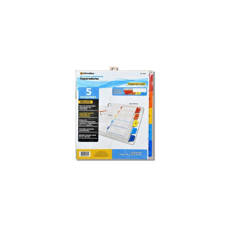 Separador 5 Divisiones Officemax con refuerzo pz Ver más grande
