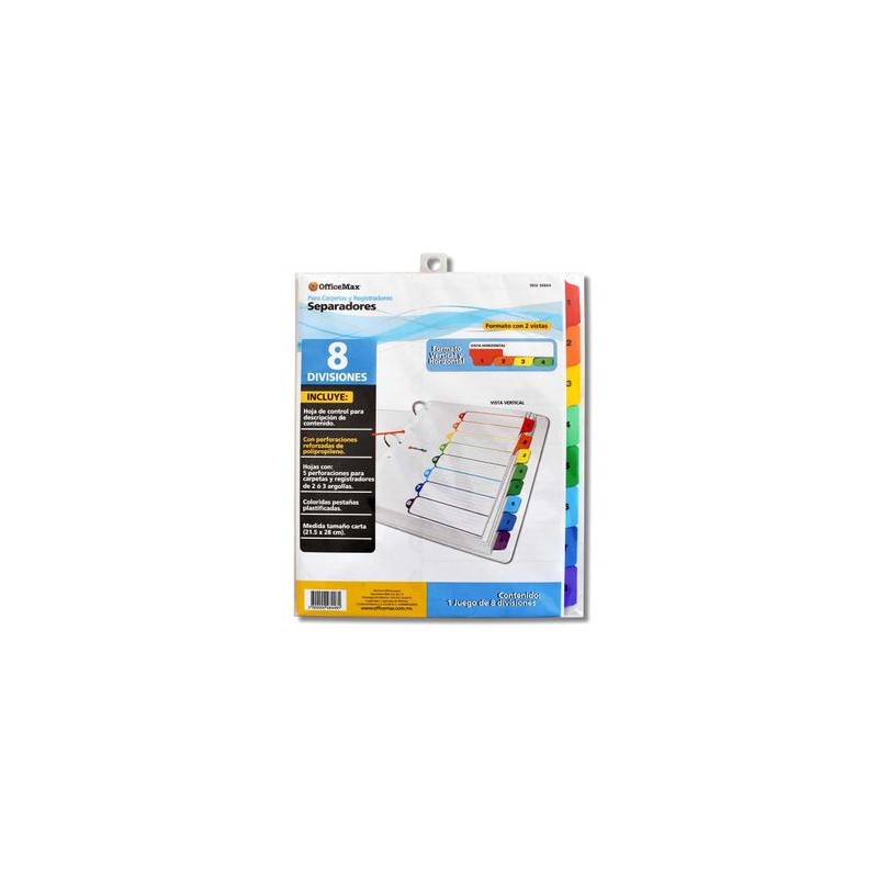 Separador 8 divisiones en colores Officemax con refuerzo