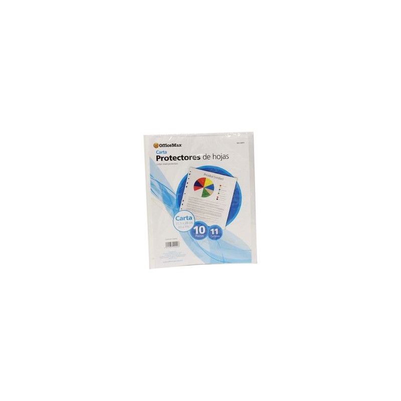FABRICADOS EN POLIPROPILENO, TAMA#O CARTA CON 11 PERFORACIONES LATERALES. IDEALES PARA CUALQUIER TIPO DE CARPETA. O DE CARPETA. PAQUETE CON 10 PIEZAS MARCA OMXCalidad de productos y entrega OfficeMax. Nuestros productos están garantizados y estamos comprometidos con la Satisfacción Total de nuestros clientes. Tenemos entrega en toda la República.Todos nuestros productos van asegurados al 100%. La garantía es contra defectos de fabricación. No incluye daños por producto mojado, maltratado o golpeado.