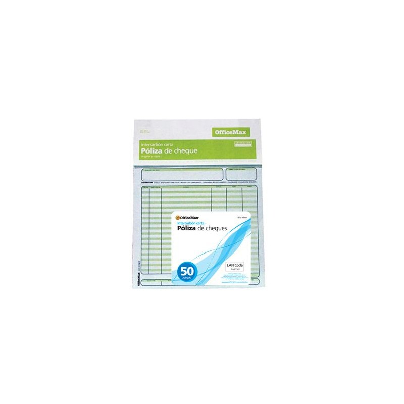 PÓLIZA CHEQUE INTERCARBONTAMA#O CARTA 50JGS OMX.PAPEL BOND. PARA LAS FUNCIONES CONTABLES Y ADMINISTRATIVAS. EXCELENTE CALIDAD.Calidad de productos y entrega OfficeMax. Nuestros productos están garantizados y estamos comprometidos con la Satisfacción Total de nuestros clientes. Tenemos entrega en toda la República.Todos nuestros productos van asegurados al 100%. La garantía es contra defectos de fabricación. No incluye daños por producto mojado, maltratado o golpeado.