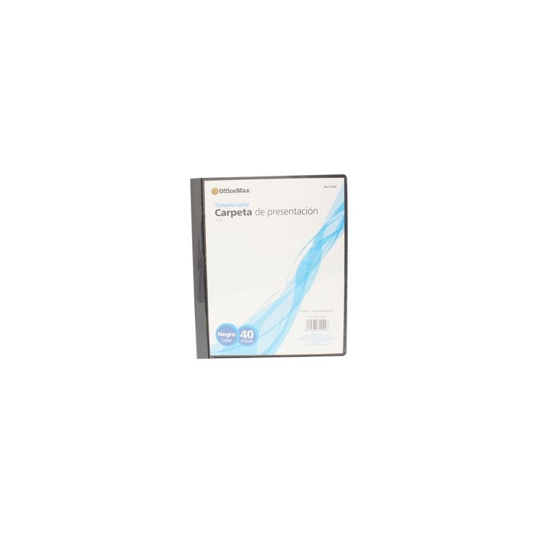 FABRICADA EN POLIPROPILENO, CON 40 PROTECTORES DE HOJAS INTEGRADOS, VENTANA PARA INSERTAR TITULOS Y CUBIERTA TRANSPARENTE, IDEAL PARA PRESENTACIONES ESPECIALES, COLOR NEGROCalidad de productos y entrega OfficeMax. Nuestros productos están garantizados y estamos comprometidos con la Satisfacción Total de nuestros clientes. Tenemos entrega en toda la República.Todos nuestros productos van asegurados al 100%. La garantía es contra defectos de fabricación. No incluye daños por producto mojado, maltratado o golpeado.