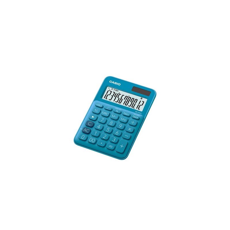 Calculadora CASIO MS-20UC-BU, 12 Dígitos, pantalla extra grande, Dos modos de alimentación (Solar y Pila), Cálculos de impuestos, Cálculos de tiempo 1 a¦o color Azul Calidad de productos y entrega OfficeMax.Si necesitas ayuda, o buscas más información contáctanos al 55-5565-0MAX (0629)