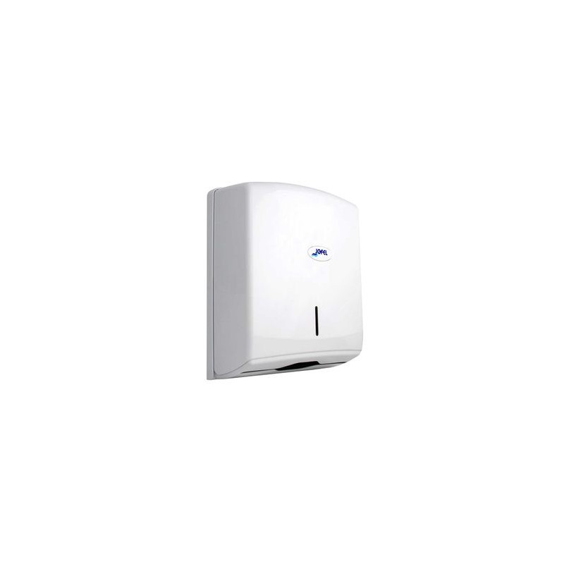 Despachador de Toallas JofelCompatible con cualquier marca de toalla interdoblada.Capacidad para 600 toallas.Hecho en plástico ABS de alta resistencia.Con cerradura y llave de seguridad.Incluye Kit de Instalación.Dimensiones en centímetros: Alto: 35 Ancho: 27 Fondo: 13.4