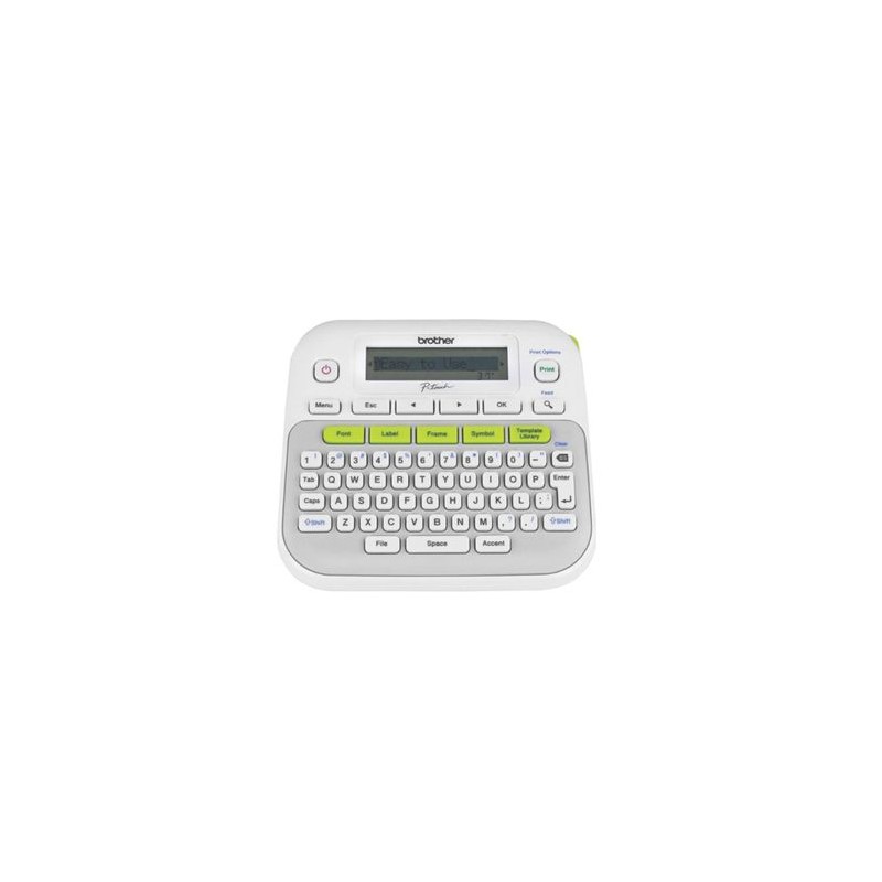 Rotulador electrónico PT-D210, organiza y presonaliza fácilmente cualquier elemento que desees en tu hogar u oficina.1. Teclas de un solo toque para dar formato rápidamente: agregue fácilmente fuentes, marcos y símbolos. 2. Obtén una vista previa del texto y diseño antes de imprimir. 3. Personaliza y elige entre 14 fuentes, 10 estilos, 97 marcos y más de 600 símbolos 4. 27 útiles plantillas de etiquetas prediseñadas: simplemente escribe e imprime.5. Almacena hasta 30 etiquetas para una rápida reimpresión. 6. Utiliza cintas de alta duración y fácil aplicación (reverso protector fácil de desprender).Incluye:Rotulador electrónico PT-D210 Cinta de arranque TZe, 12mm x 4m Manual de usuario Modelo: PT-D210Color:Blanco Medidas: 6.8cm (Al) x 15.74 (An) x 14.98 (F)Capacidad: Impresión de etiquetas laminadas (transferencia térmica) Especificaciones: Ancho de cinta 6,9, y 12mm de ancho / Máx. velocidad de impresión 20mm/seg / Resolución de impresión 180 dpi / Display 15 caracteres x 1 línea / Teclado QWERTY / Cortador manual / 14 Fuentes y 10 estilos / 17 Plantillas de texto y 10 patrones de etiquetas / 617 símbolos / Impresión vertical y en espejo / 6 baterias AAA (no incluidas) Consumible: Cintas con tecnología laminada TZeCalidad de productos y entrega OfficeMax. Nuestros productos están garantizados y estamos comprometidos con la Satisfacción Total de nuestros clientes. Tenemos entrega en toda la República.Todos nuestros productos van asegurados al 100%. La garantía es contra defectos de fabricación. No incluye daños por producto mojado, maltratado o golpeado.