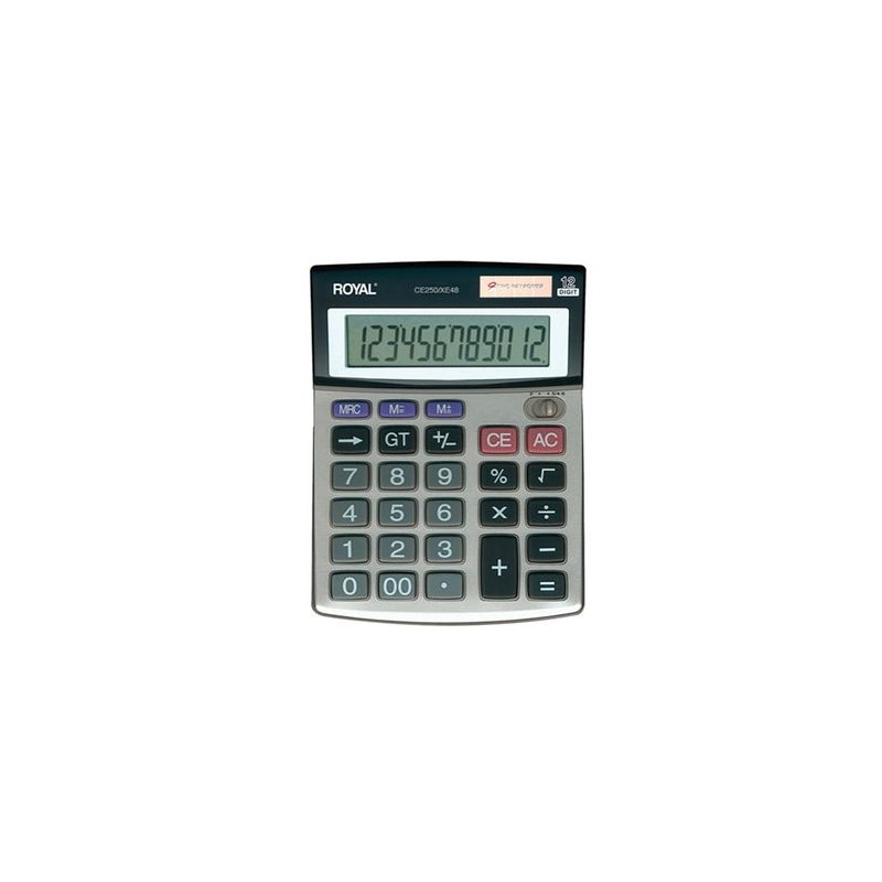 Calculador Royal CE-250/750Realiza operaciones y funciones básicas. Cuenta con función de memoria para retener las últimas operaciones ejecutadas.- Cálculos y funciones básicas.- Diseño de escritorio / Visualización de 12 dígitos / Pantalla grande - Hecha de materiales plásticos altamente resistentes y con una estructura dispuesta para colocar en superficies planas.- Energía Dual (Solar y baterías)Calidad de productos y entrega OfficeMax.Si necesitas ayuda, o buscas más información contáctanos al 55-5565-0MAX (0629)