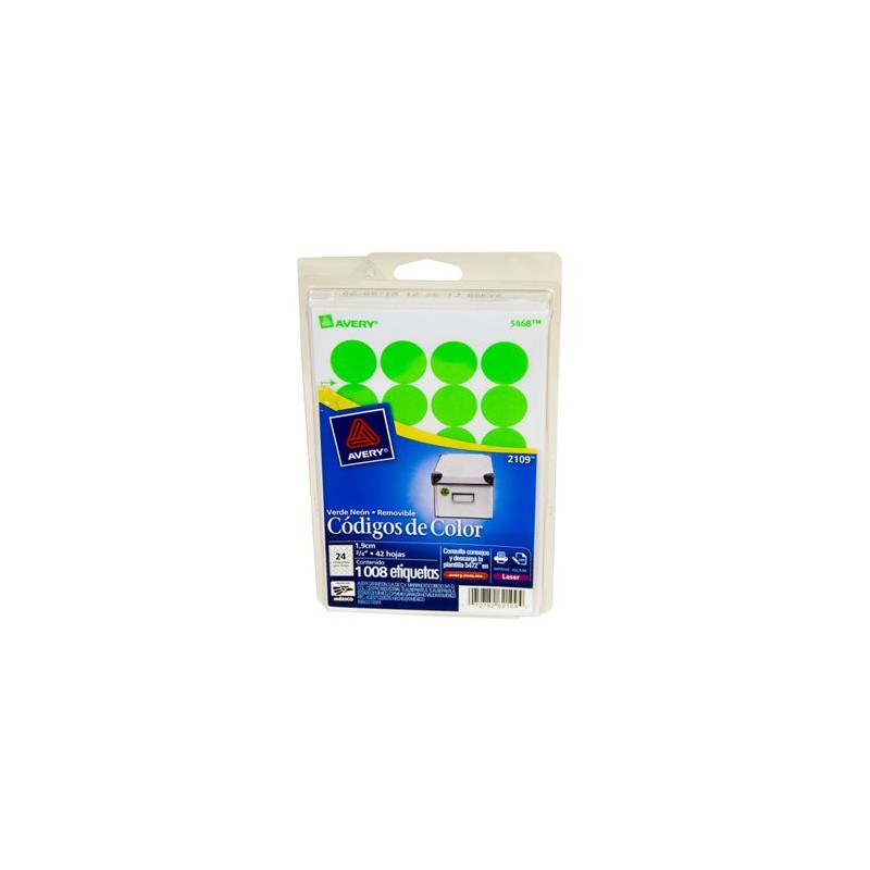 ETIQUETA MULTIUSOS REMOVIBLE CIRCULAR 3/4" COLOR VERDE NEON CON 1008 PIEZAS. ETIQUETAS CÓDIGO DE COLOR CON ADHESIVO REMOVIBLE, SE COLOCAN Y SE RETIRAN SIN DEJAR RESIDUOS, IDEALES PARA UTILIZARSE COMO CONTROL DE INVENTARIOSCalidad de productos y entrega OfficeMax. Nuestros productos están garantizados y estamos comprometidos con la Satisfacción Total de nuestros clientes. Tenemos entrega en toda la República.Todos nuestros productos van asegurados al 100%. La garantía es contra defectos de fabricación. No incluye daños por producto mojado, maltratado o golpeado.