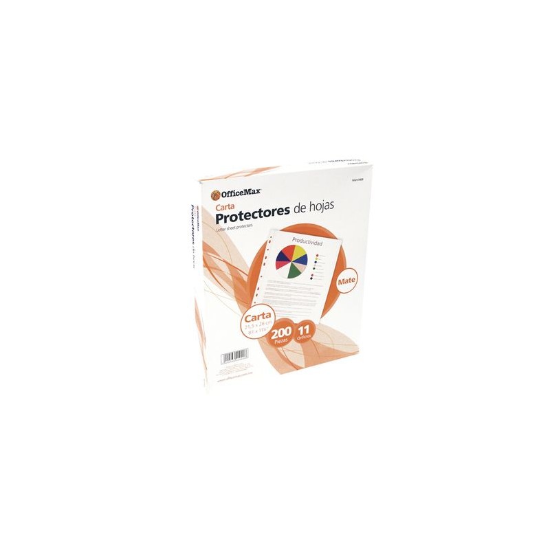 PROTECTOR DE HOJAS TAMA#O CARTA MATE OMX CON 200 PIEZAS. PROTEGE LOS DOCUMENTOS. MATERIALES DE PRIMERA CALIDAD.Calidad de productos y entrega OfficeMax. Nuestros productos están garantizados y estamos comprometidos con la Satisfacción Total de nuestros clientes. Tenemos entrega en toda la República.Todos nuestros productos van asegurados al 100%. La garantía es contra defectos de fabricación. No incluye daños por producto mojado, maltratado o golpeado.