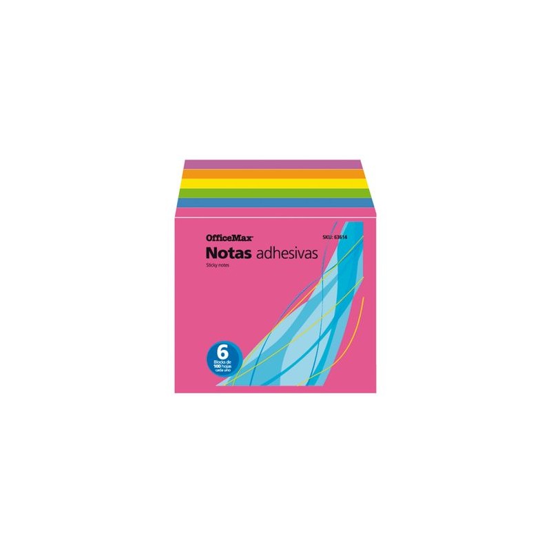 NOTAS ADHESIVAS EN FORMA DE CUBO NEON, MEDIDA 7.6 X 7.6 CM600 HOJAS. CONTIENE 6 BLOCKS DE 100 HOJAS CADA UNO LE PERMITE REPARTIR EN FORMA ADECUADA CADA BLOCKCalidad de productos y entrega OfficeMax. Nuestros productos están garantizados y estamos comprometidos con la Satisfacción Total de nuestros clientes. Tenemos entrega en toda la República.Todos nuestros productos van asegurados al 100%. La garantía es contra defectos de fabricación. No incluye daños por producto mojado, maltratado o golpeado.