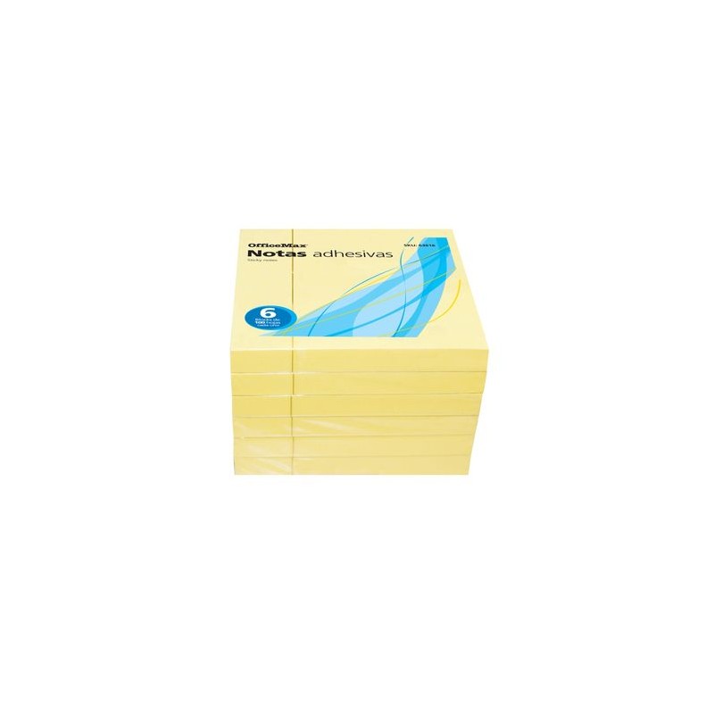 NOTAS ADHESIVAS EN FORMA DE CUBO AMARILLAS, MEDIDA 7.6 X 7.6CM600 HOJAS. CONTIENE 6 BLOCKS DE 100 HOJAS CADA UNO LE PERMITE REPARTIR EN FORMA ADECUADA CADA BLOCKCalidad de productos y entrega OfficeMax. Nuestros productos están garantizados y estamos comprometidos con la Satisfacción Total de nuestros clientes. Tenemos entrega en toda la República.Todos nuestros productos van asegurados al 100%. La garantía es contra defectos de fabricación. No incluye daños por producto mojado, maltratado o golpeado.