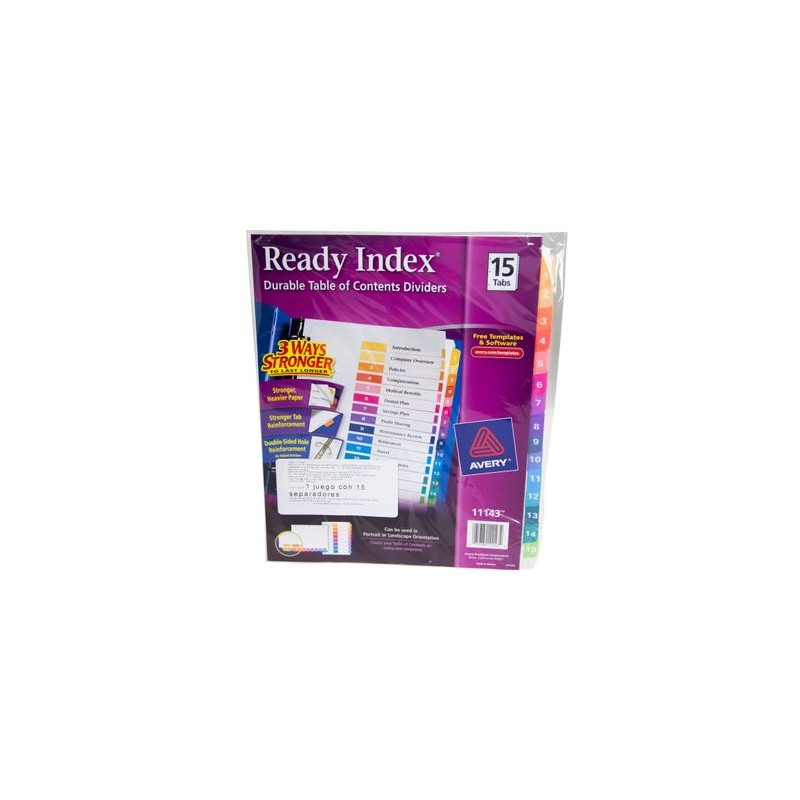 SEPARADORES 15PESTA#AS MULTICOLORESCalidad de productos y entrega OfficeMax. Nuestros productos están garantizados y estamos comprometidos con la Satisfacción Total de nuestros clientes. Tenemos entrega en toda la República.Todos nuestros productos van asegurados al 100%. La garantía es contra defectos de fabricación. No incluye daños por producto mojado, maltratado o golpeado.