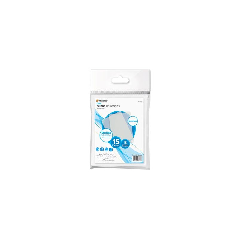 MICA SEMI-RIGIDA TAMA#O CARTA TRANSPARENTE ECONOMICA PARA DAR MAYOR PROTECCION A SUS DOCUMENTOS.Calidad de productos y entrega OfficeMax. Nuestros productos están garantizados y estamos comprometidos con la Satisfacción Total de nuestros clientes. Tenemos entrega en toda la República.Todos nuestros productos van asegurados al 100%. La garantía es contra defectos de fabricación. No incluye daños por producto mojado, maltratado o golpeado.