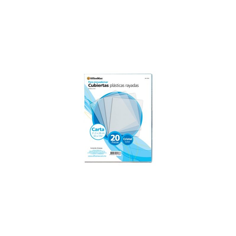 CUBIERTA PLASTICARAYADA COLOR CRISTAL IDEAL PARA PRESENTACIONES ESCOLARES O DE OFICINA.Calidad de productos y entrega OfficeMax. Nuestros productos están garantizados y estamos comprometidos con la Satisfacción Total de nuestros clientes. Tenemos entrega en toda la República.Todos nuestros productos van asegurados al 100%. La garantía es contra defectos de fabricación. No incluye daños por producto mojado, maltratado o golpeado.