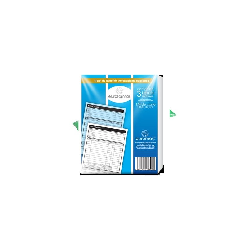 REMISION AUTOCOPIANTE TAAMA#O 1/4 CARTA CON 3 BLOCKS DE 22 JJUEGOS CADA UNOCalidad de productos y entrega OfficeMax. Nuestros productos están garantizados y estamos comprometidos con la Satisfacción Total de nuestros clientes. Tenemos entrega en toda la República.Todos nuestros productos van asegurados al 100%. La garantía es contra defectos de fabricación. No incluye daños por producto mojado, maltratado o golpeado.